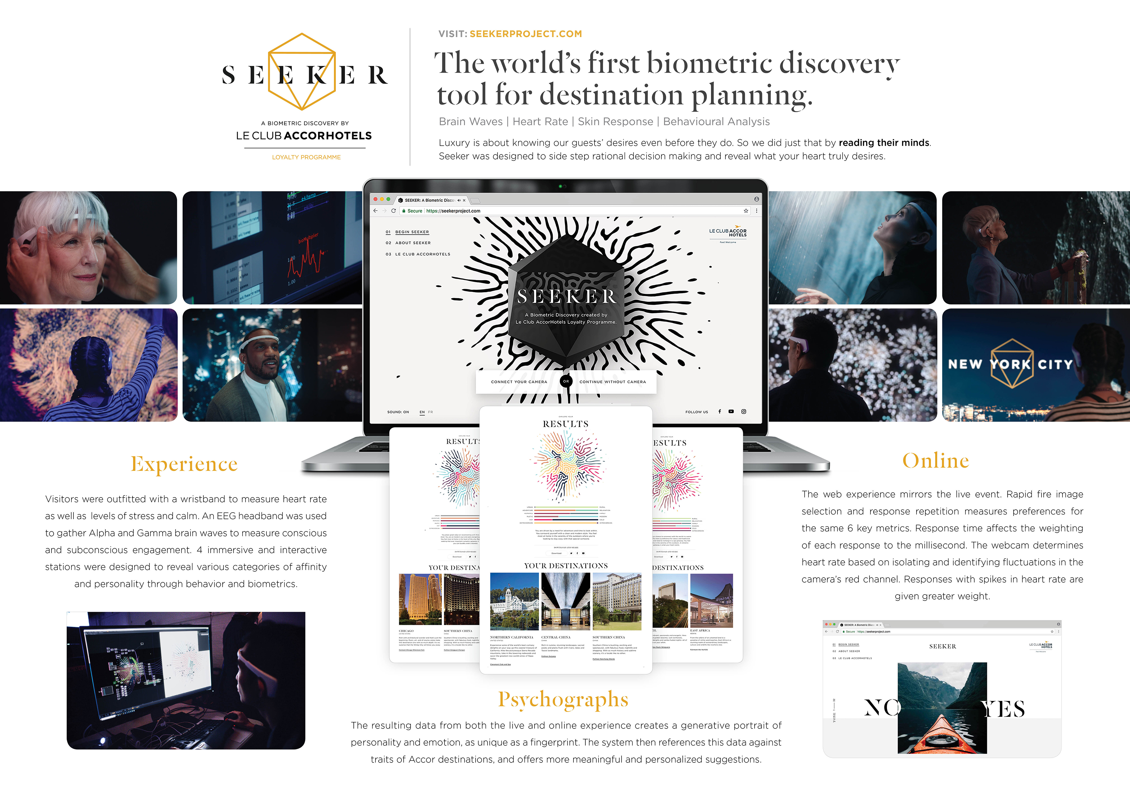 “Seeker,” the world’s first biometric discovery tool for destination planning was created by Cossette for Le Club AccorHotels. Luxury is all about understanding a guest’s desires, even before they do. So the idea was to read customers’ minds.