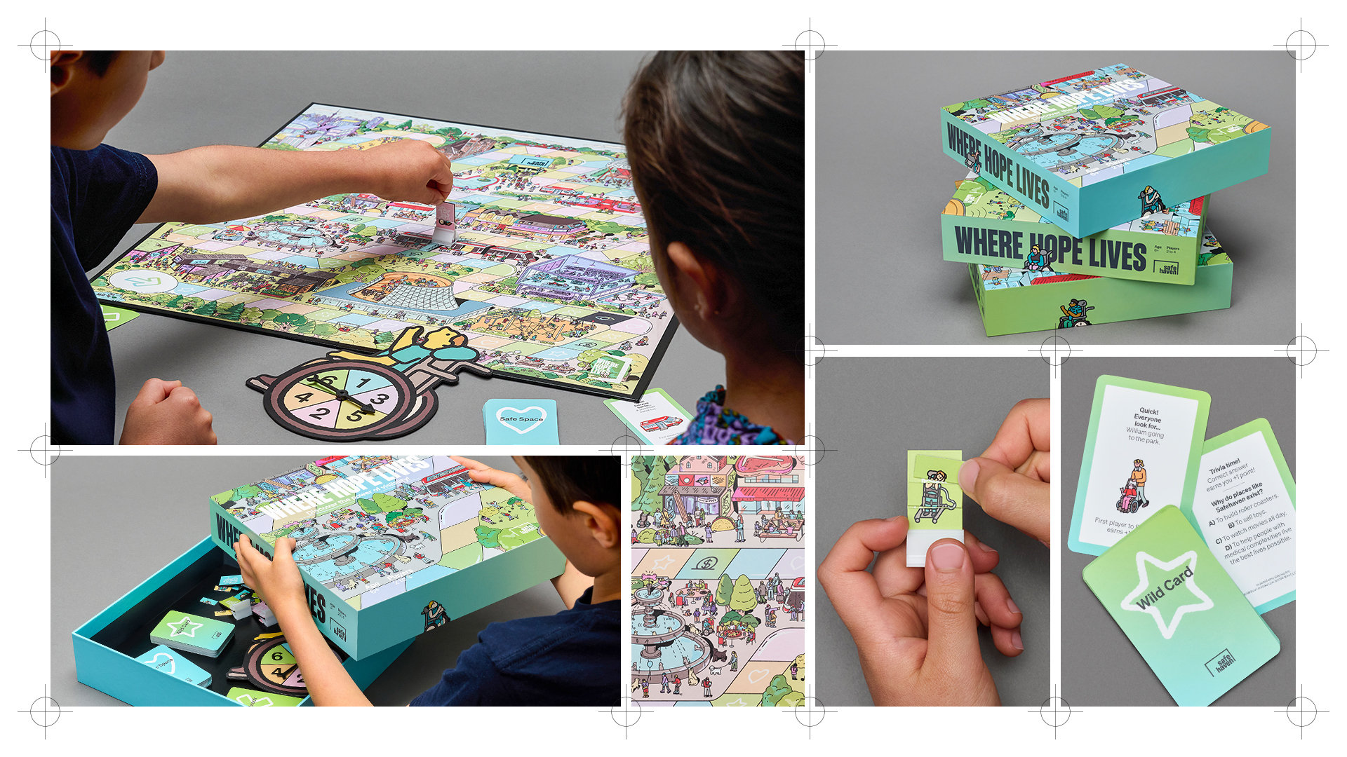 So, they created “Where Hope Lives”, a board game designed for families to play together. The game extended Safehaven’s existing visual identity into a tactile, interactive experience.
