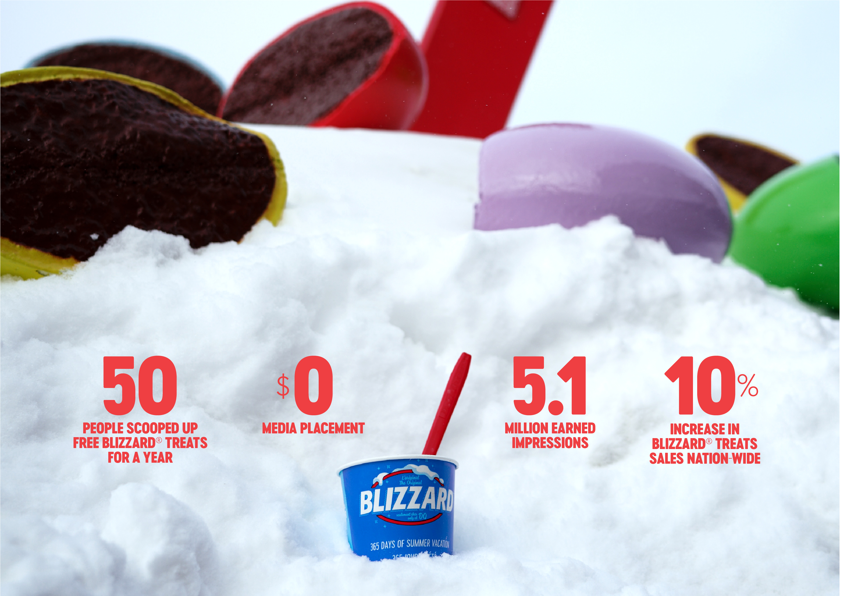 Dairy Queen Canada is best known for its Blizzard treats and iconic red spoon, with strongest performance in summer. However, between December and March, Blizzard Treat® sales typically decline by about 35 percent, despite Canadians continuing to consume ice-cream throughout winter. The challenge was not demand, but relevance. Blizzard Treat® simply fell out of consideration once temperatures dropped.The business objective was to reverse this predictable winter decline by reigniting cravings, restoring top-of-mind awareness, and reframing Blizzard Treat® as appropriate for the coldest months of the year. This needed to be achieved with a modest budget and without relying on traditional paid media.