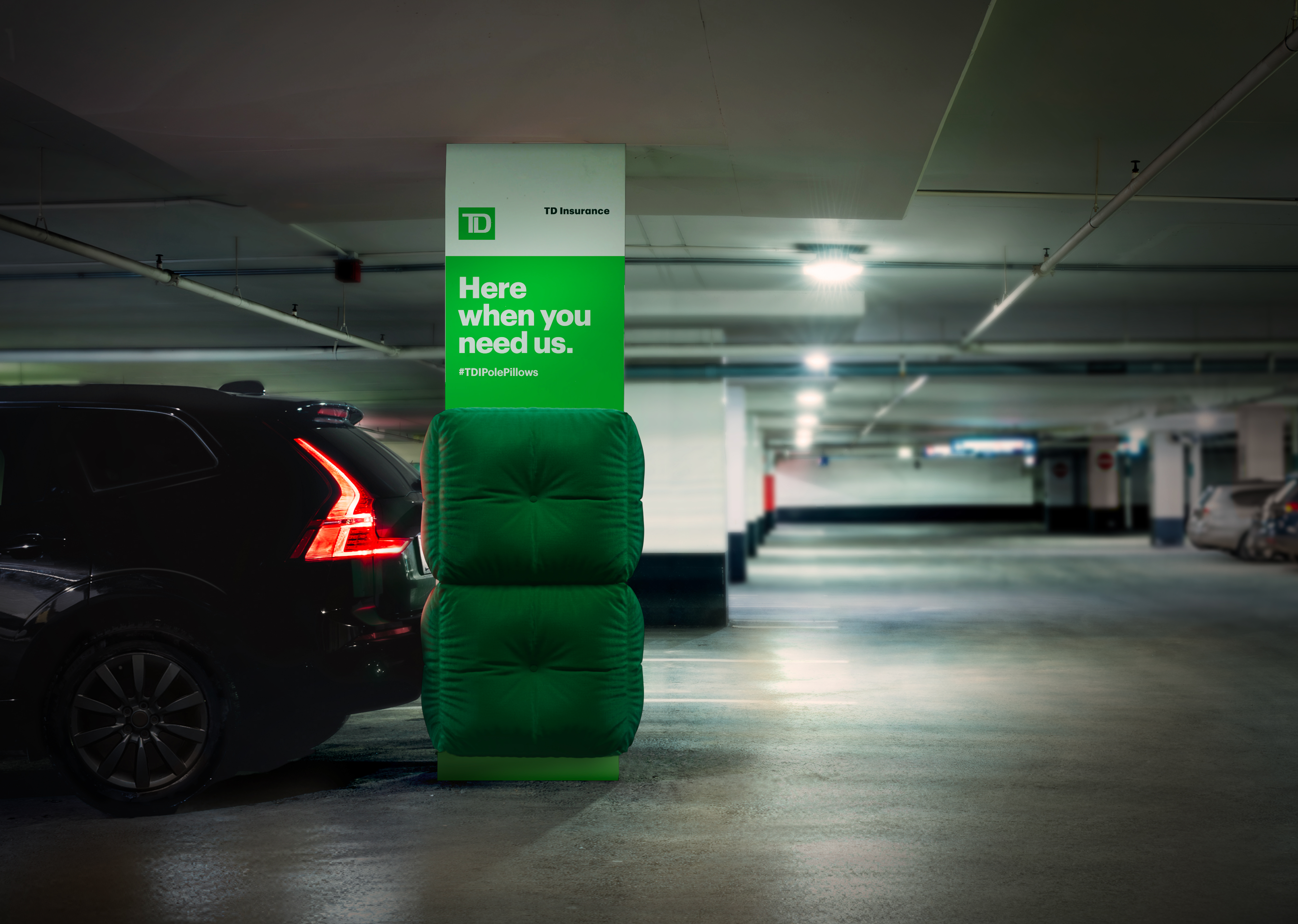 Using TD Insurance’s claims data, the agency pinpointed the most accident-prone parking lots. Then they transformed them into something unexpected: TD Insurance “Pole Pillows” – giant, custom-made cushions designed to soften the blow (literally) and reinforce the brand’s positioning in the real world.